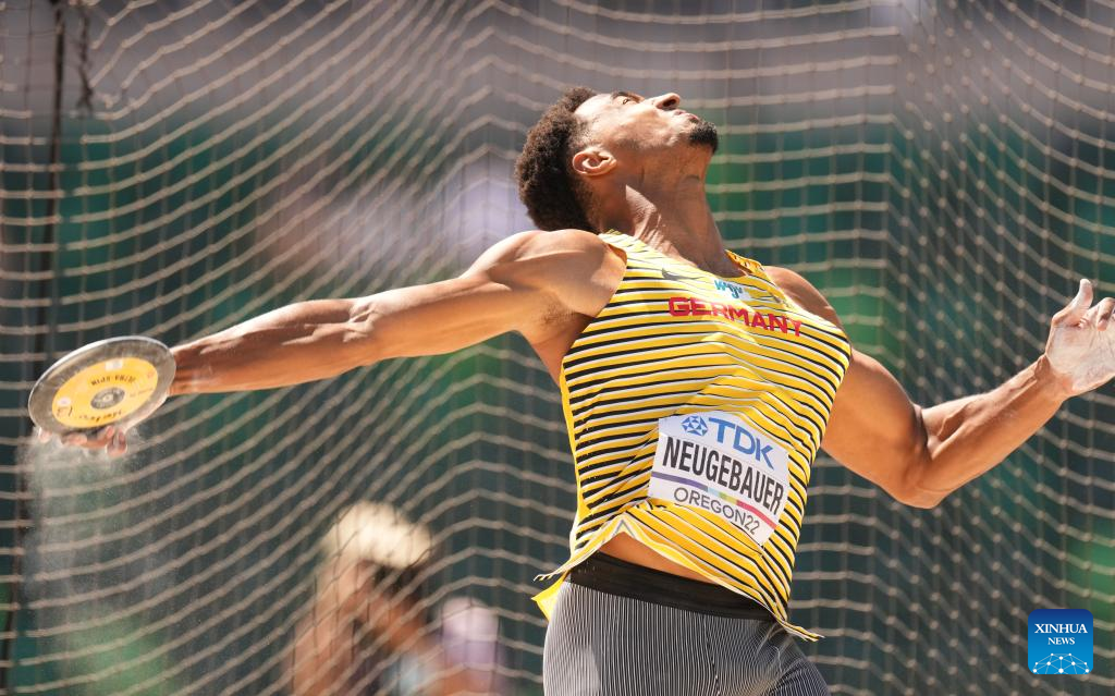 Leo Neugebauer of Germany competes during the discus throw of the Decathlon event at the World Athletics Championships Oregon22 in Eugene, Oregon, the United States, July 24, 2022. (Xinhua/Wu Xiaoling)