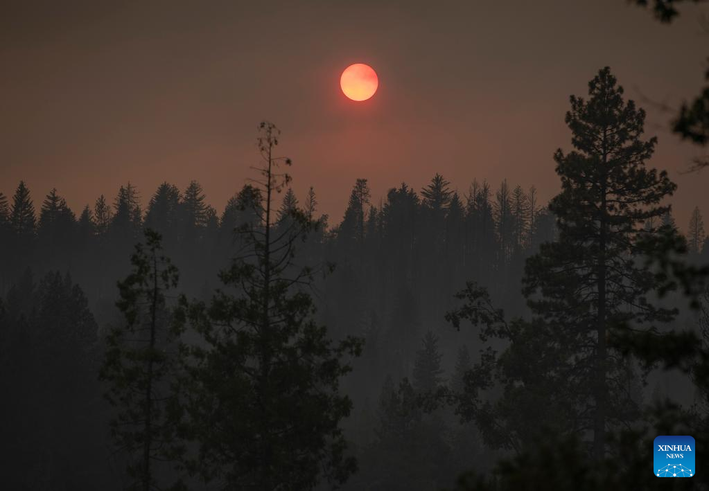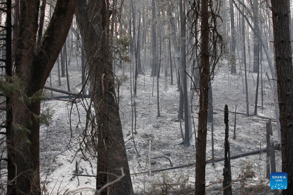 Photo taken on July 25, 2022 shows an area hit by a wildfire in Mariposa County in central California, the United States. Driven by hot, dry weather and drought conditions, the blaze began on Friday afternoon in Mariposa County in central California. It rapidly grows to be one of the largest wildfires in the state so far this year. (Photo by Li Jianguo/Xinhua)