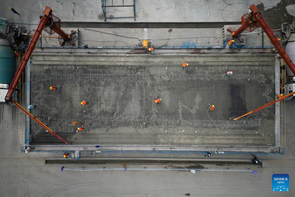 A worker operates at a beam fabrication yard in Yichun, northeast China's Heilongjiang Province, on July 25, 2022. Crossing permafrost regions, the Harbin-Yichun high-speed railway will total approximately 300 km with a designed speed of 250 km per hour. (Xinhua/Zhang Tao)