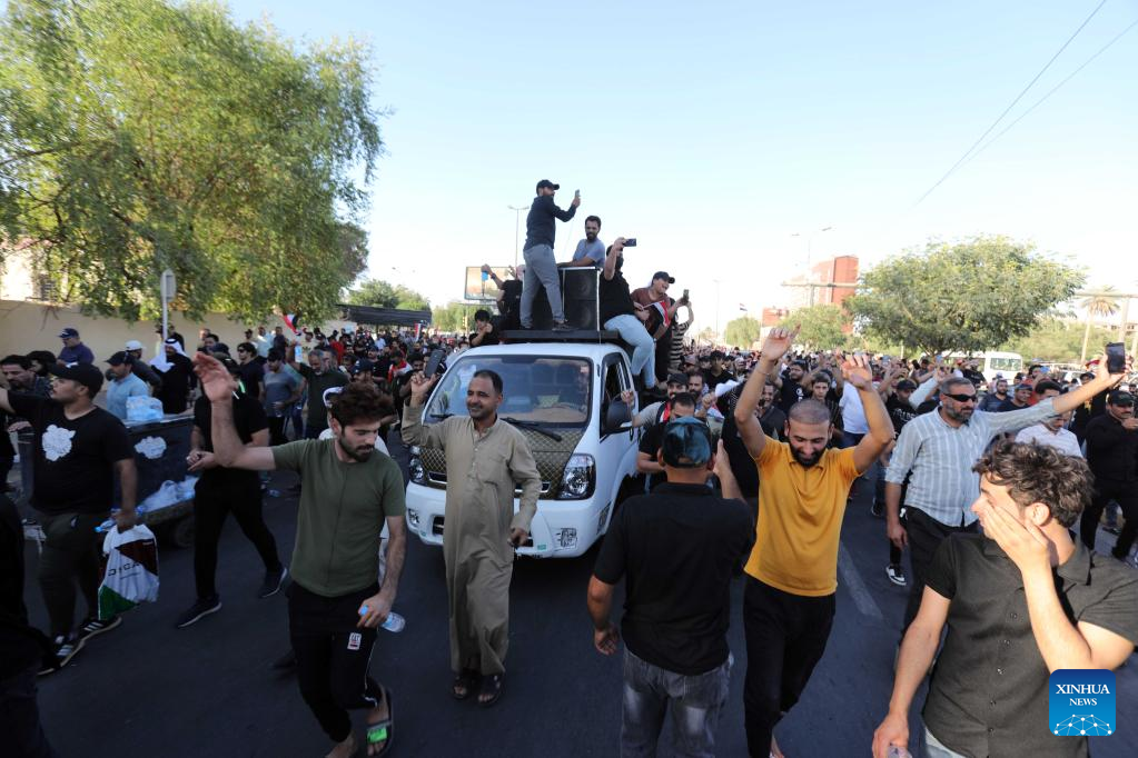 The protest came two days after the Coordination Framework, an umbrella group of Shiite parliamentary parties, nominated Mohammed Shia' al-Sudani for the post of prime minister. (Xinhua/Khalil Dawood)