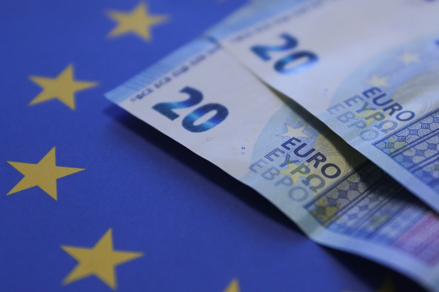 The 20-Euro banknotes are seen in Brussels, Belgium, Dec. 30, 2021. (Xinhua/Zheng Huansong)■