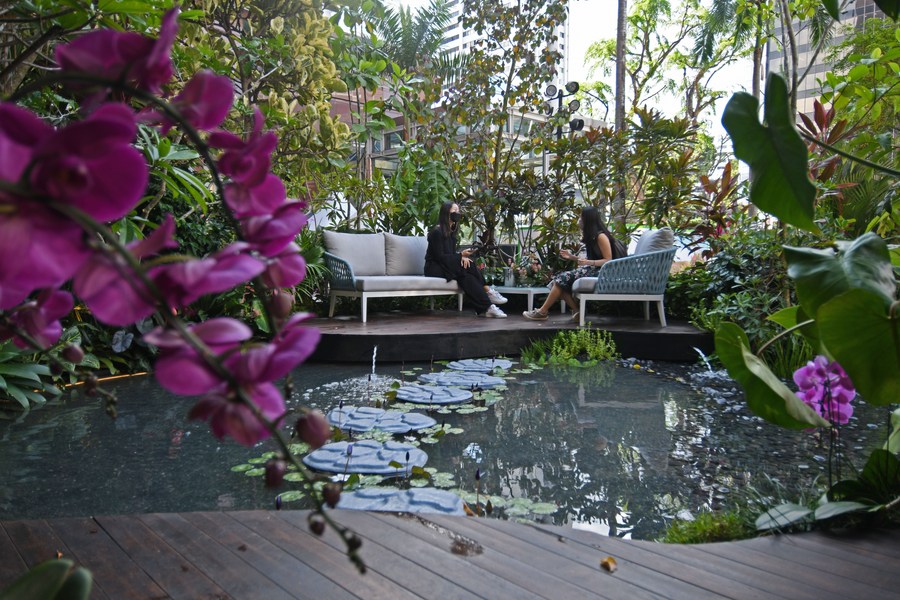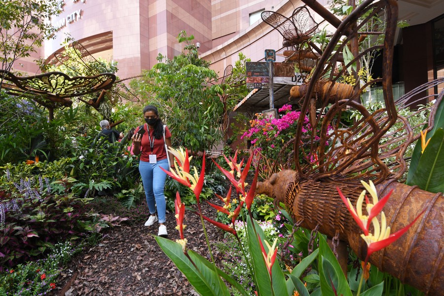 People view participating works of the Show Garden competition, as part of the media preview of the Singapore Garden Festival in Singapore on July 29, 2022. (Xinhua/Then Chih Wey)