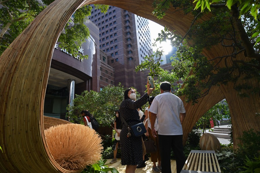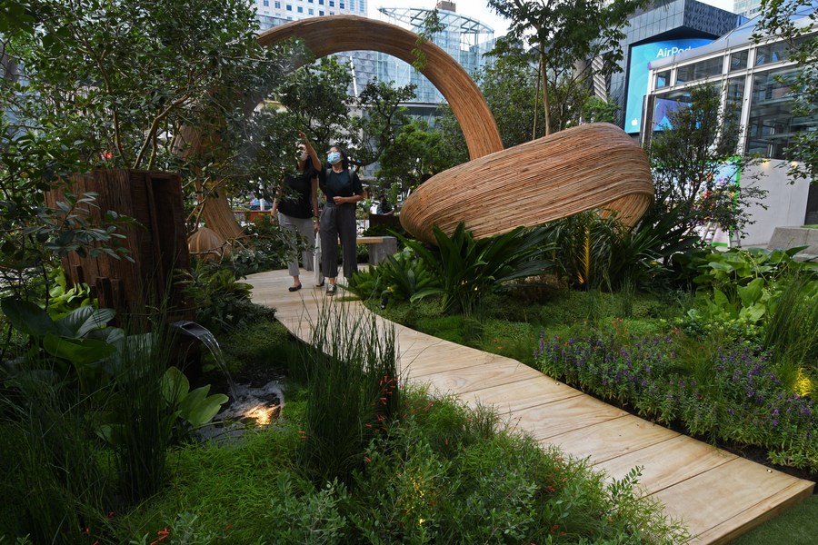 People view participating works of the Show Garden competition, as part of the media preview of the Singapore Garden Festival in Singapore on July 29, 2022. (Xinhua/Then Chih Wey)■