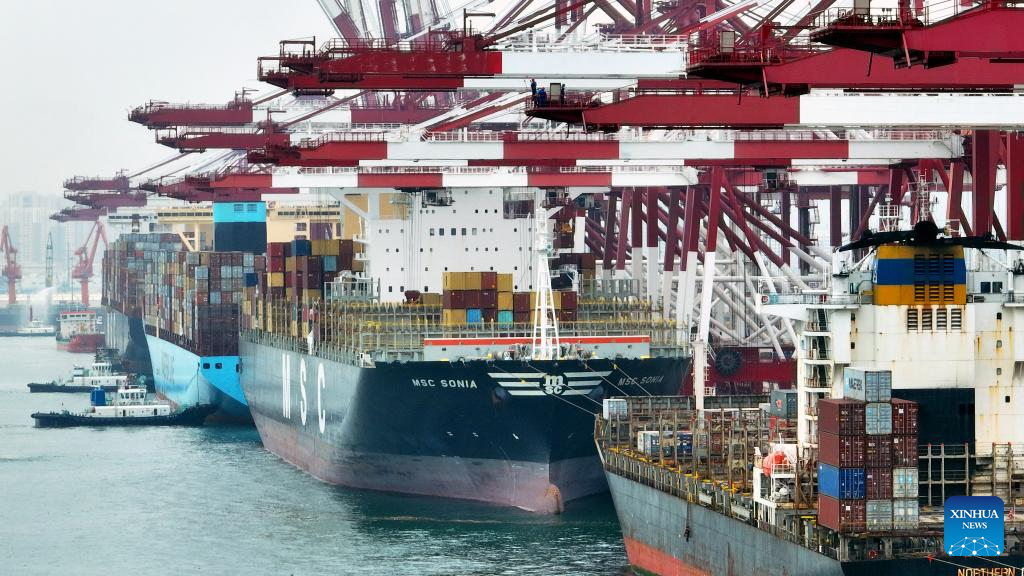 Aerial photo taken on July 29, 2022 shows container ships at the Qianwan Container Terminal in Qingdao Port, east China's Shandong Province. (Xinhua/Li Ziheng)