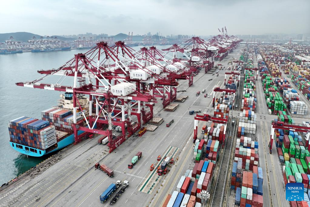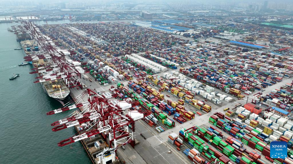 Aerial photo taken on July 29, 2022 shows the Qianwan Container Terminal in Qingdao Port, east China's Shandong Province. (Xinhua/Li Ziheng)