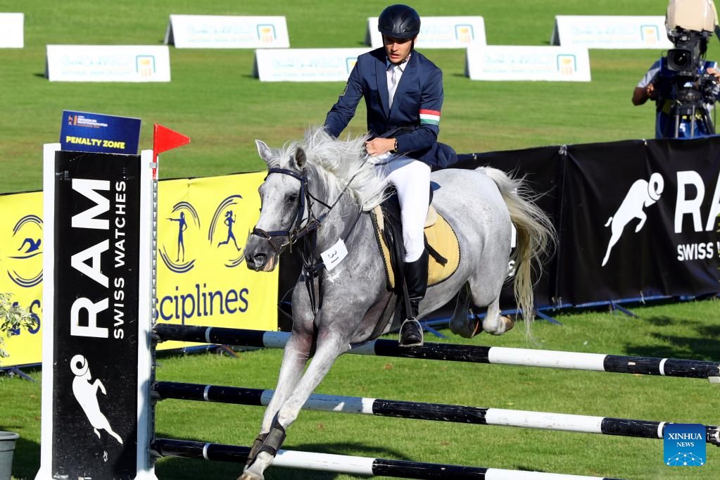 Balazs Szep of Hungary competes in riding during the men's final of the UIPM 2022 Pentathlon World Championships in Alexandria, Egypt, July 30, 2022. (Xinhua/Ahmed Gomaa)