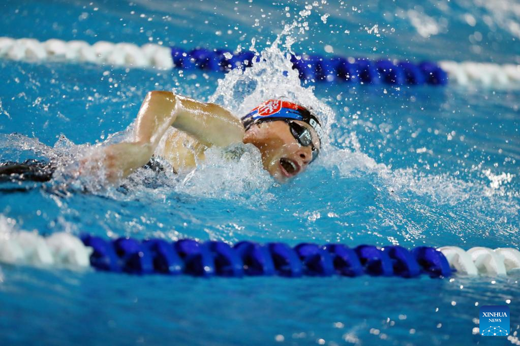 Karolina Krenkova of the Czech Republic competes in swimming during the women's final of the UIPM 2022 Pentathlon World Championships in Alexandria, Egypt, July 30, 2022. (Xinhua/Ahmed Gomaa)
