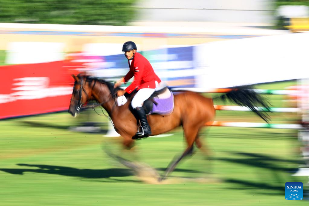 Elgendy Ahmed of Egypt competes in riding during the men's final of the UIPM 2022 Pentathlon World Championships in Alexandria, Egypt, July 30, 2022. (Xinhua/Ahmed Gomaa)