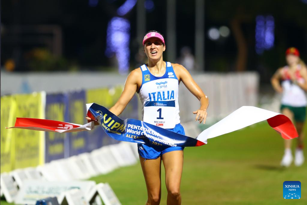 Elena Micheli of Italy competes in laser run during the women's final of the UIPM 2022 Pentathlon World Championships in Alexandria, Egypt, July 30, 2022. (Xinhua/Ahmed Gomaa)