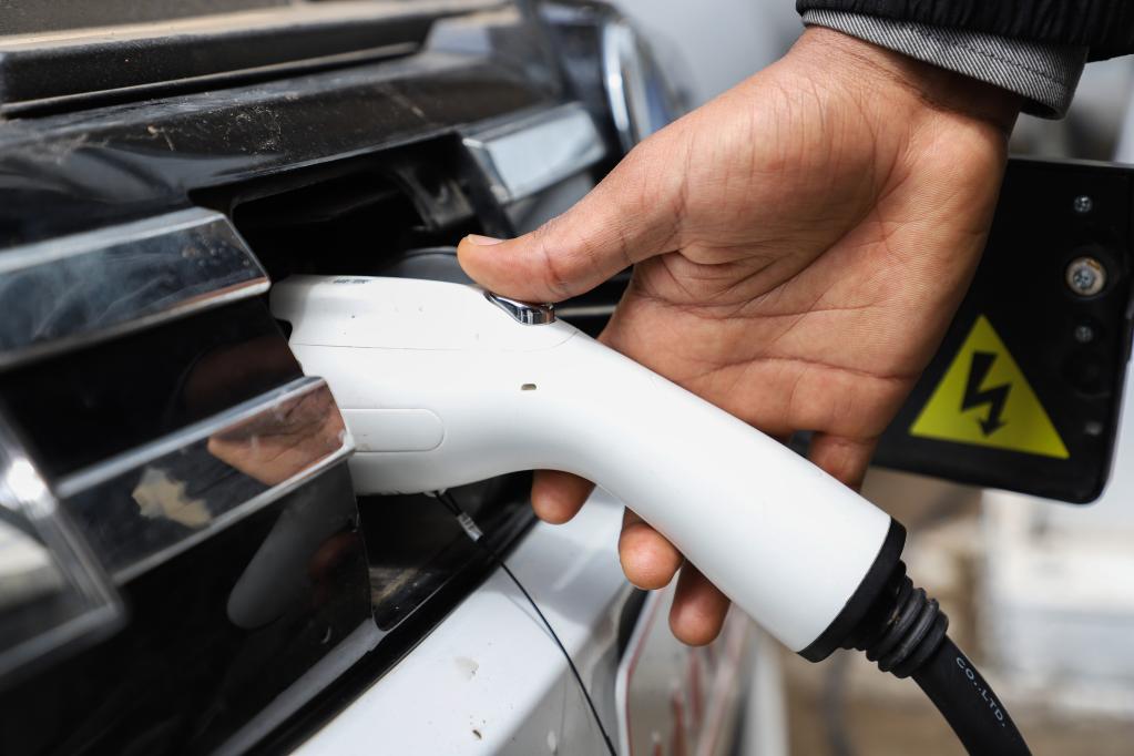 An electrical vehicle imported by Green Tech Africa is charged at its showroom in Addis Ababa, Ethiopia, on July 22, 2022. (Photo by Michael Tewelde/Xinhua)