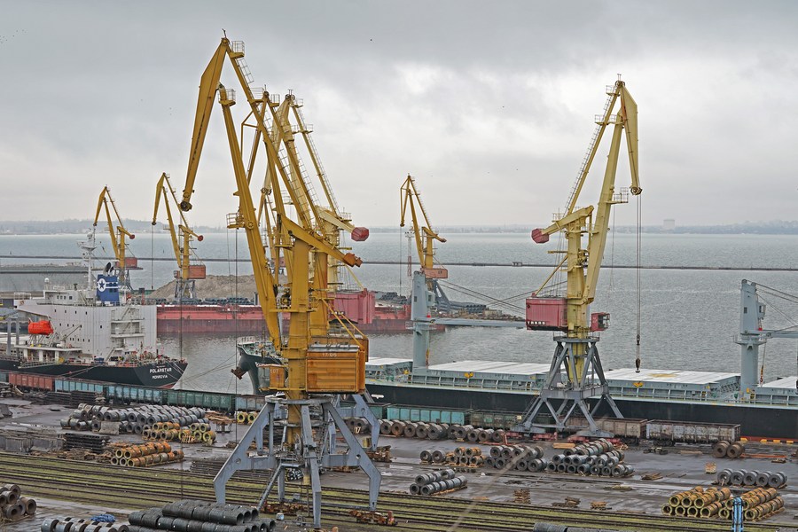 File photo taken on March 3, 2022 shows the view of the port of Odesa, Ukraine. (Xinhua/Wang Qing)