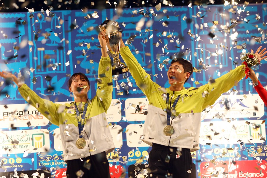ALEXANDRIA, Egypt, Aug. 1 (Xinhua) -- South Korea's two-pentathlete team won on Sunday evening the mixed relay gold medal at the 2022 Pentathlon World Championships, marking the conclusion of the eight-day competitions held by the Union Internationale de Pentathlon Moderne (UIPM) in Egypt's coastal city of Alexandria.