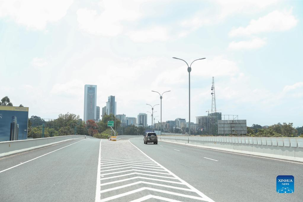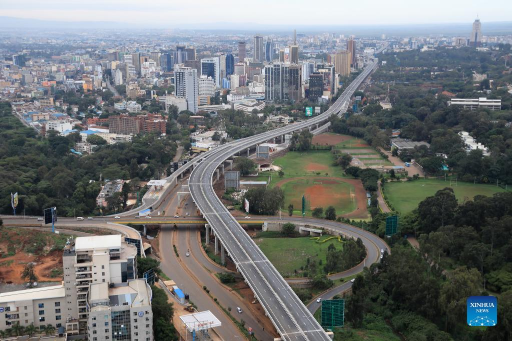 Photo taken on May 8, 2022 shows a section of the Nairobi Expressway in Nairobi, Kenya. Kenya's President Uhuru Kenyatta on Sunday hailed Chinese-built roads in his country for boosting development and cutting travel times. Kenyatta made the comments when speaking at the commissioning ceremony for the Nairobi Expressway and the revamped Nairobi Eastern Bypass. China Road and Bridge Corporation built the 27 km Nairobi Expressway under a public-private partnership model. The road began a trial run in May. (Xinhua/Dong Jianghui)