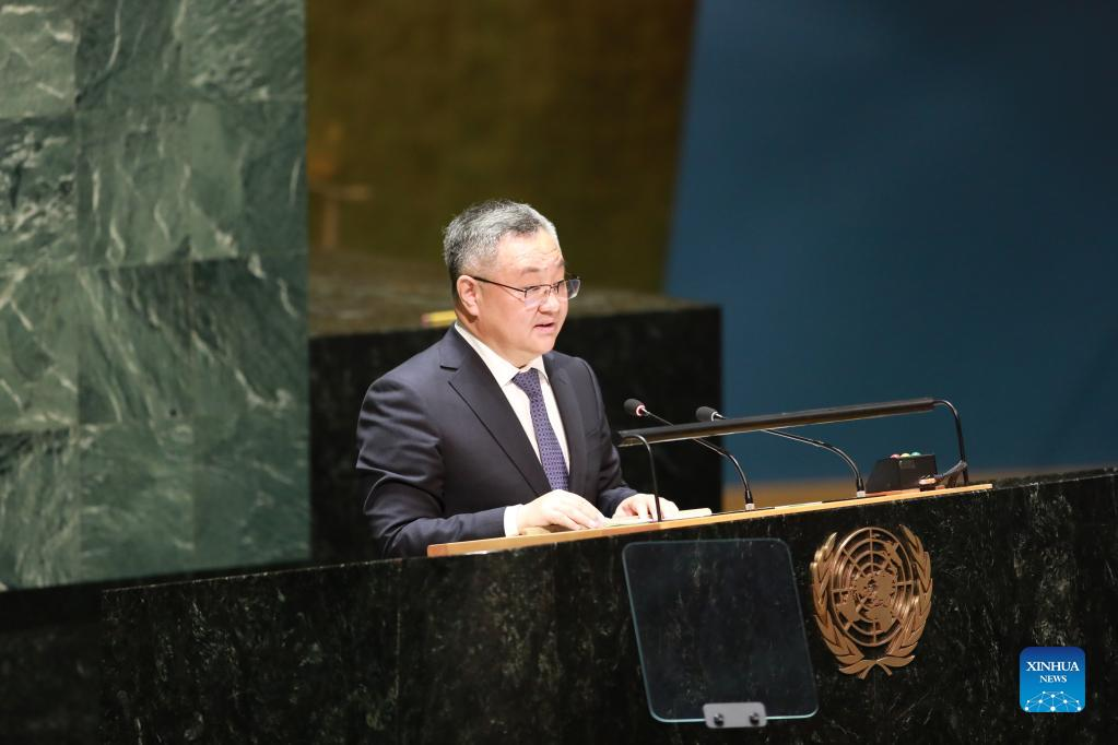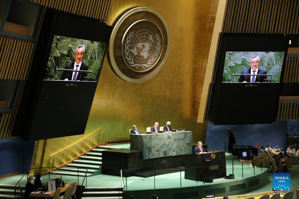 Fu Cong, head of the Chinese delegation and the director-general of the Department of Arms Control of the Chinese Foreign Ministry, speaks at the 10th Review Conference of the Parties to the Treaty on the Non-Proliferation of Nuclear Weapons (NPT) at the UN headquarters in New York, Aug. 2, 2022. (Xinhua/Xie E)