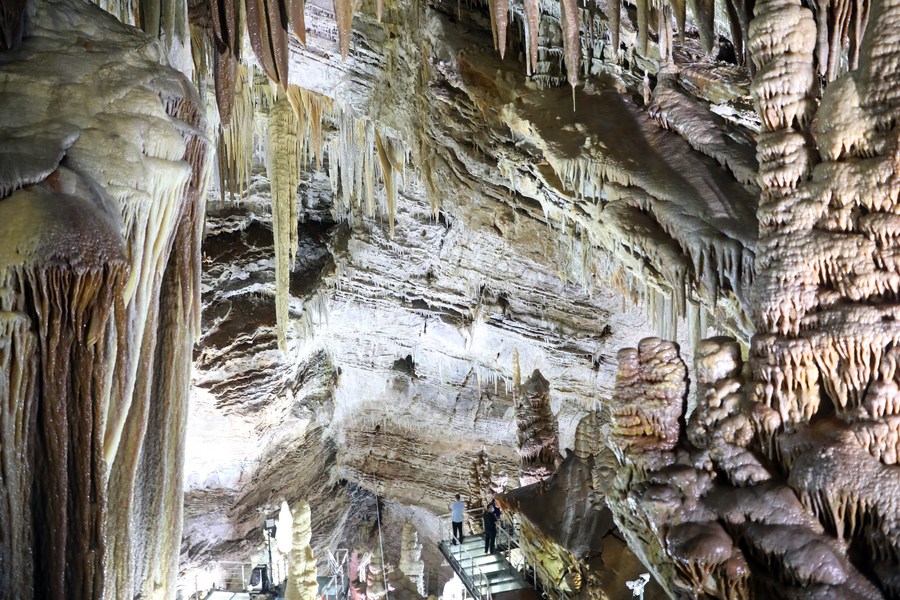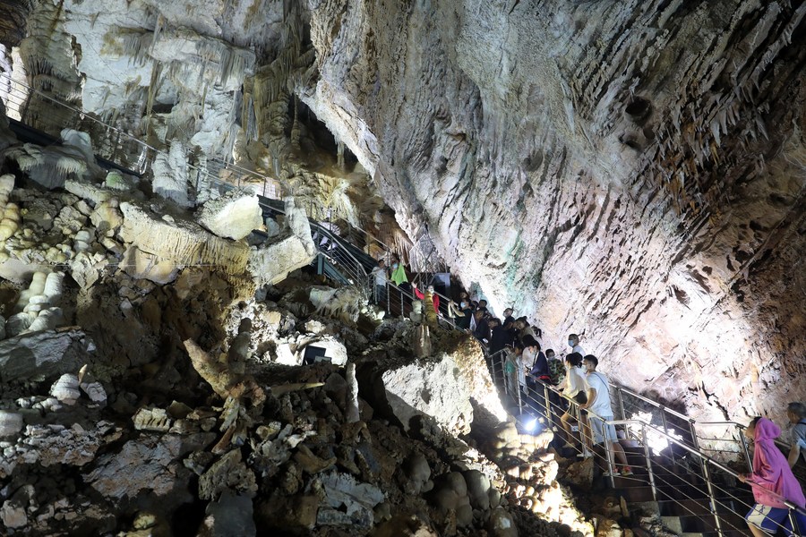 Tourists visit the Xinglong karst cave in Taojiatai Village of Xinglong County, north China's Hebei Province, Aug. 3, 2022. (Xinhua/Luo Xuefeng)