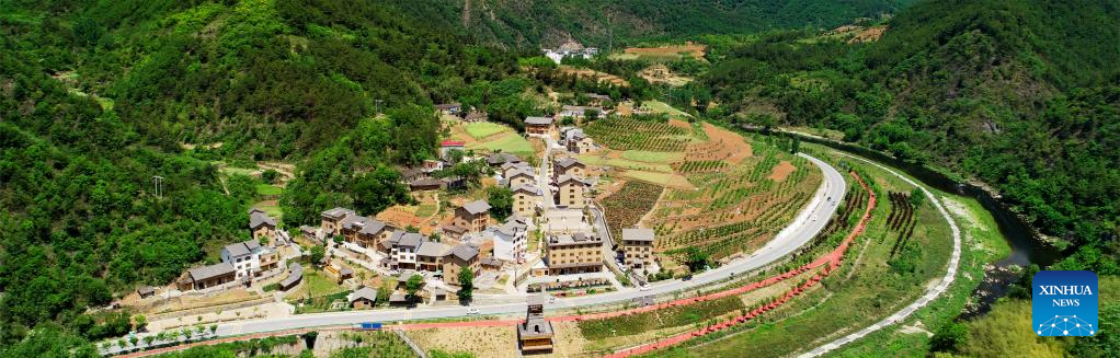Aerial photo taken on May 16, 2021 shows a view of Shuangshigou Village in Yunxi County, central China's Hubei Province. (Xinhua)