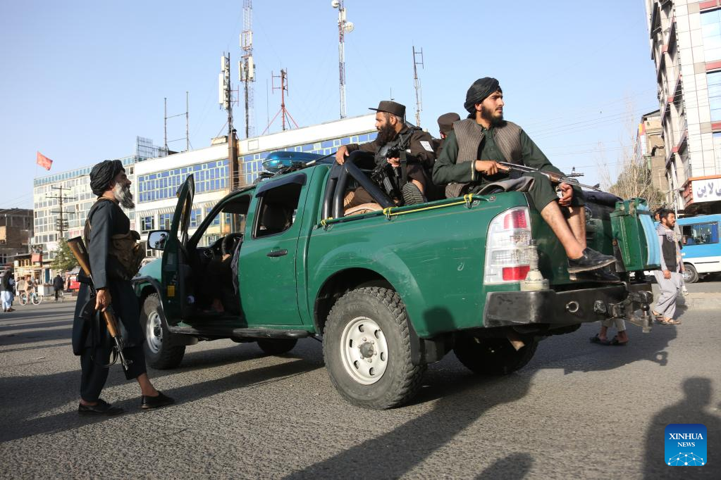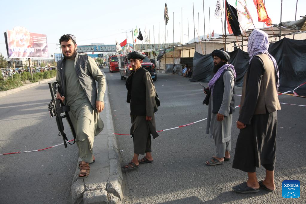 Members of Afghan security forces guard near the site of a blast in Kabul, Afghanistan, on Aug. 6, 2022. Two people were confirmed dead and 22 others injured in a blast which rocked the western edge of Kabul on Saturday, Kabul police spokesman Khalid Zadran said on social media. (Photo by Saifurahman Safi/Xinhua)