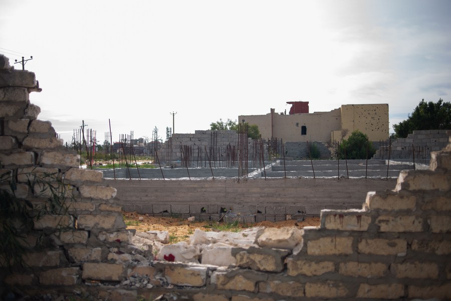 A new house is under construction on a destroyed land in Ain Zara area in southern Tripoli, Libya on Feb. 6, 2021. (Photo by Nada Harib/Xinhua)