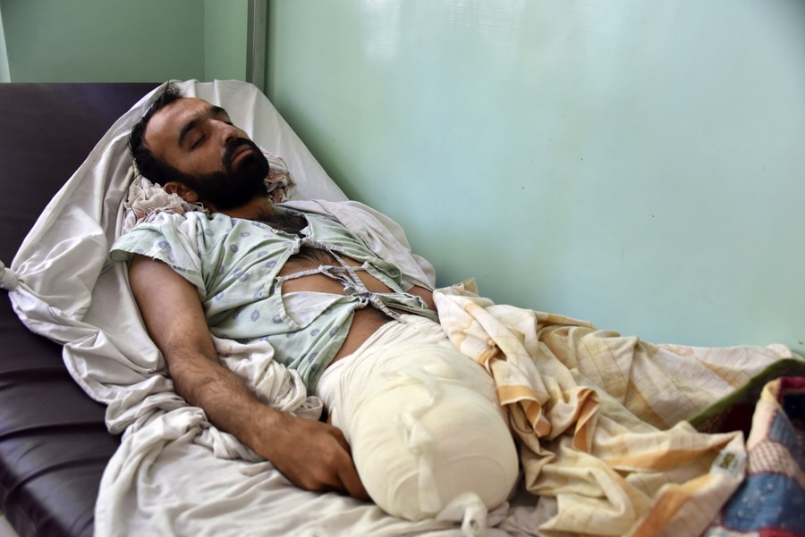 An injured man receives medical treatment at a local hospital in Kandahar city, southern Afghanistan, April 16, 2021. (Photo by Sanaullah Seiam/Xinhua)