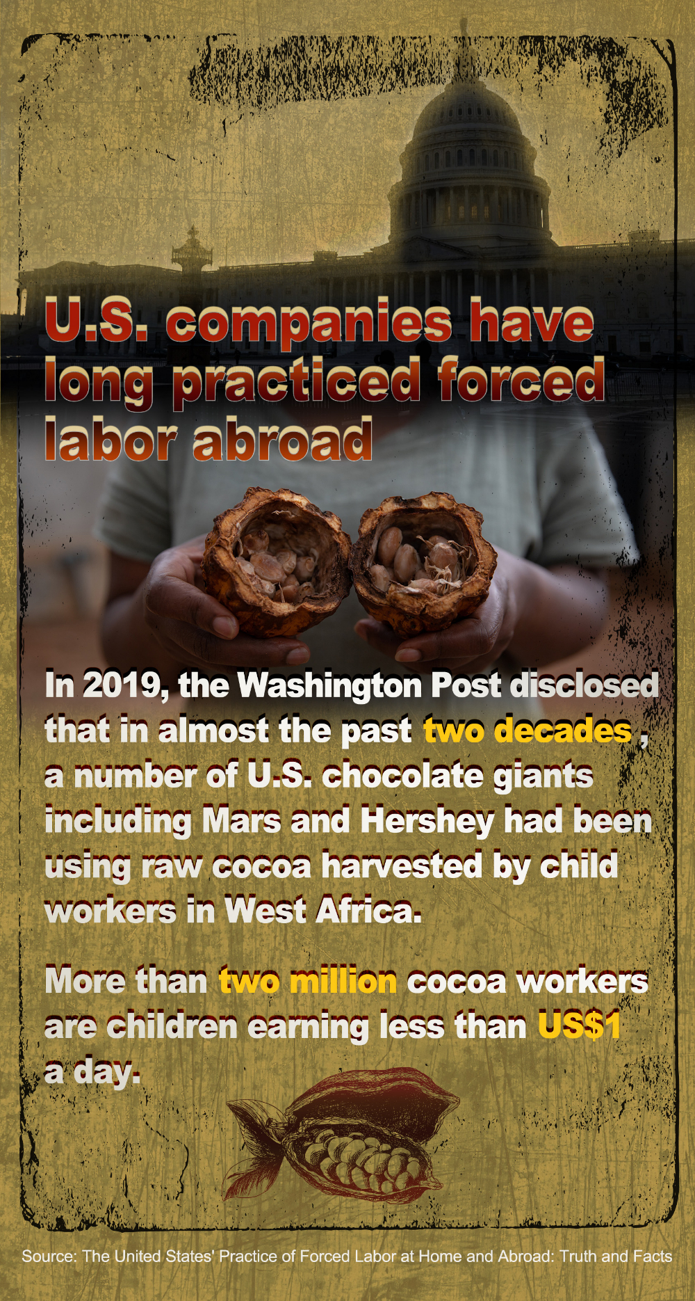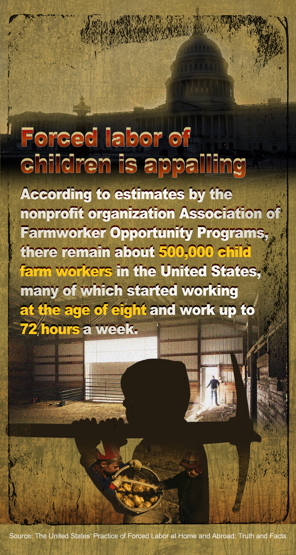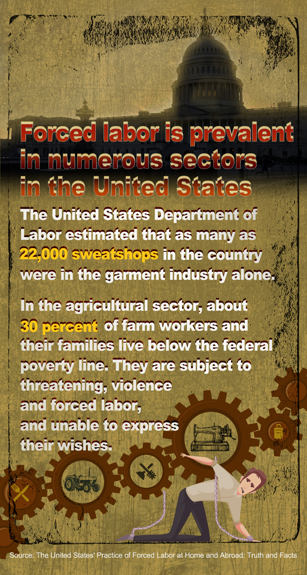 Multiple data and media reports have shown that the United States is an underperformer in the ratification and implementation of international labor conventions, which has caused serious transnational human trafficking and human rights violations in other countries, the report said.