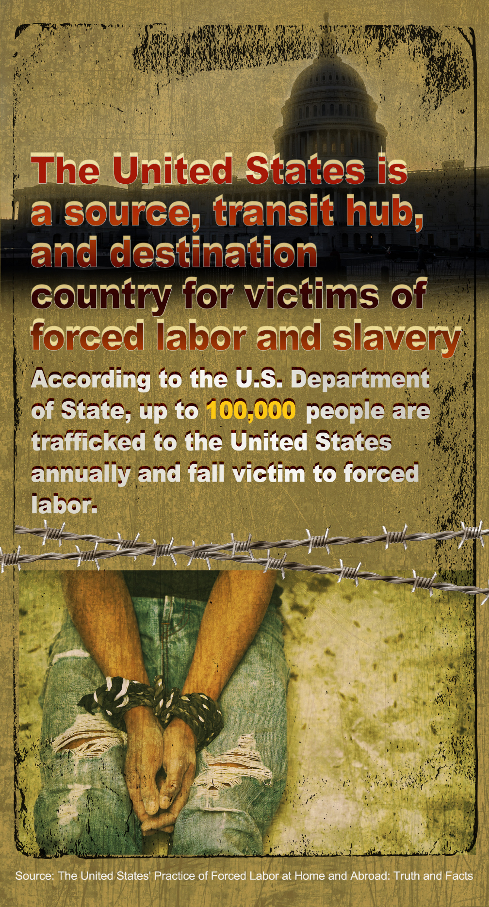 Citing data from the U.S. Department of State, the report said that up to 100,000 people are trafficked to the United States annually and fall victim to forced labor. In the past five years, cases of forced labor and human trafficking were reported in all the 50 U.S. states and Washington D.C.