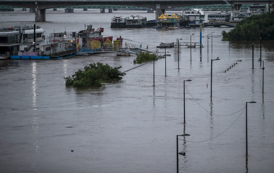 Photo taken on Aug. 9, 2022 shows an inundated park in Seoul, South Korea. (NEWSIS/Handout via Xinhua)