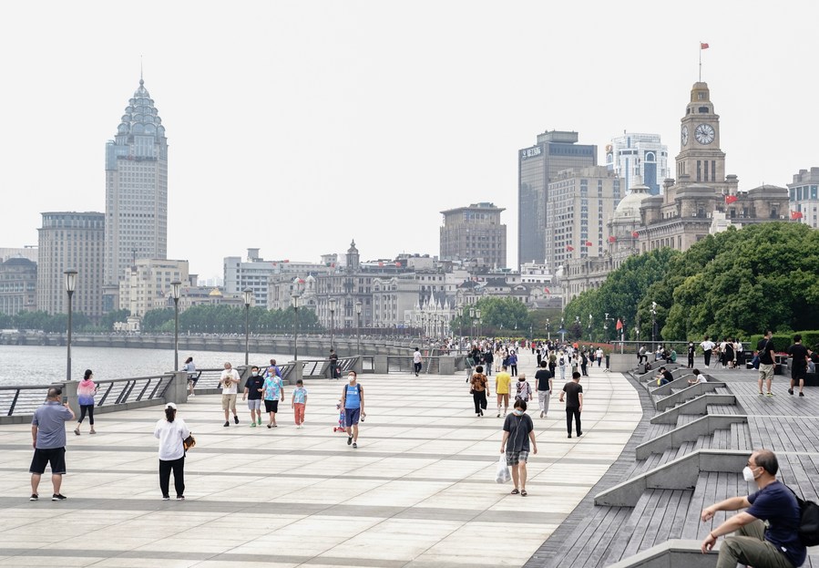 Photo taken on June 1, 2022 shows a view of the Bund area in east China's Shanghai. (Xinhua/Ding Ting)
