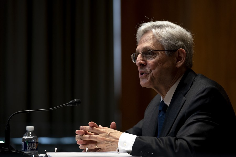 U.S. Attorney General Merrick Garland testifies before the Senate Appropriations Subcommittee on Commerce, Justice, Science, and Related Agencies during a hearing on A Review of the President's Fiscal Year 2022 Funding Request for the U.S. Department of Justice in Washington, D.C., the United States, on June 9, 2021. (Stefani Reynolds/Pool via Xinhua)