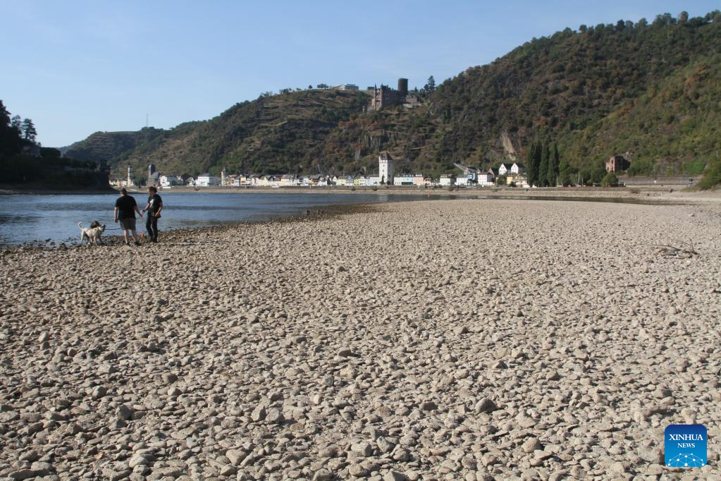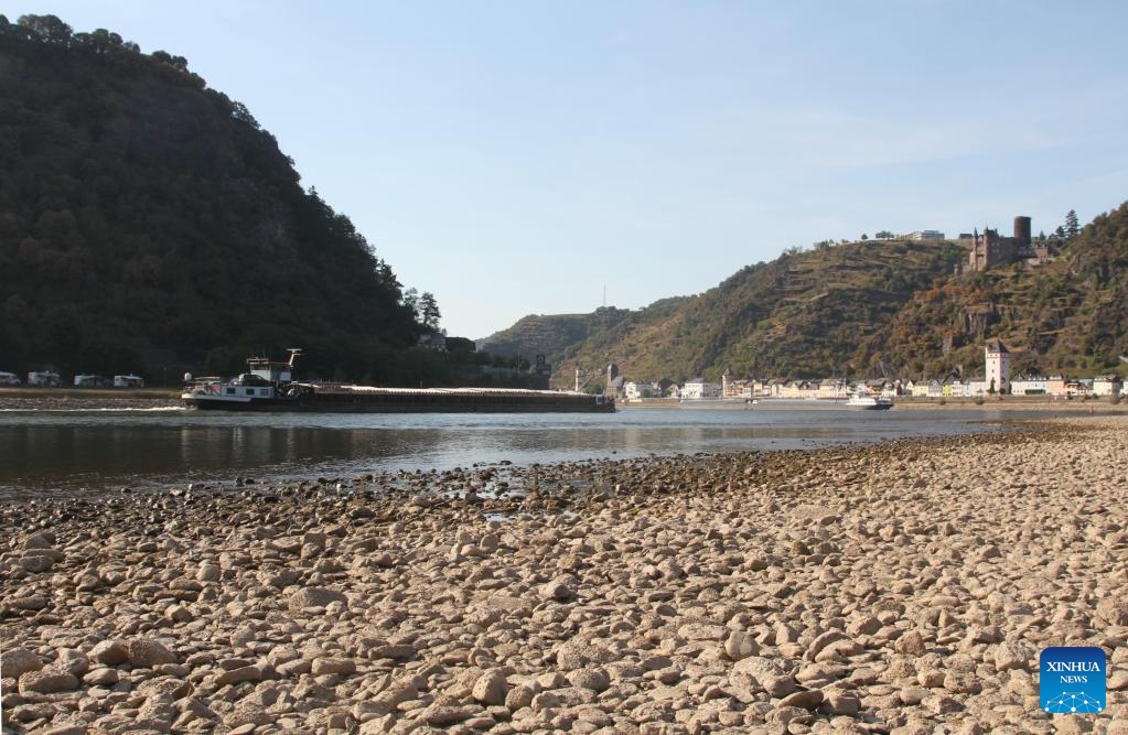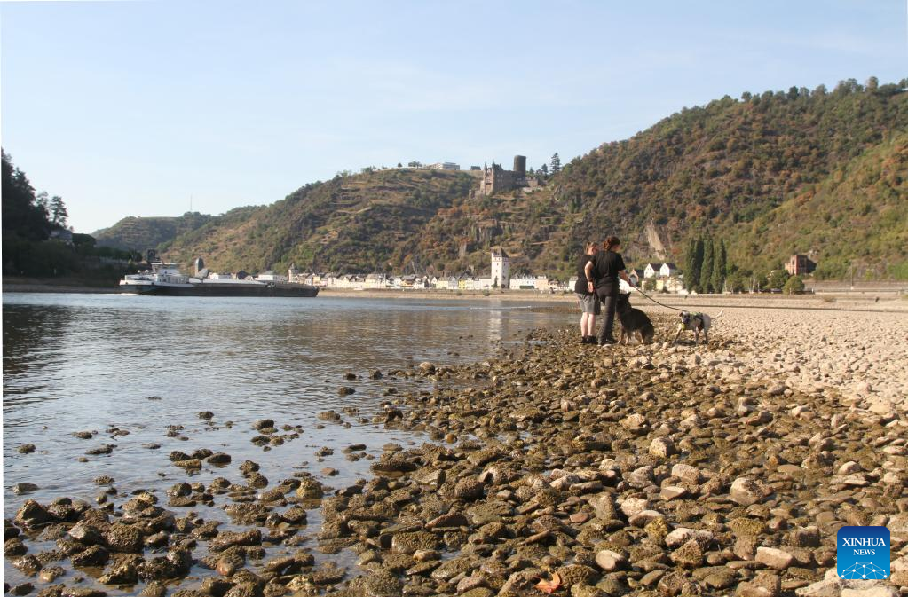 The water level of river Rhine has dropped due to high temperature and drought. (Xinhua/Shan Weiyi)