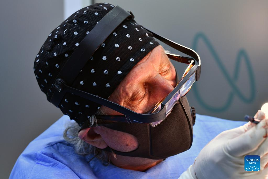 A Turkish doctor conducts hair implantation for a patient in Bursa, Türkiye, on Aug. 11, 2022. (Photo by Mustafa Kaya/Xinhua)