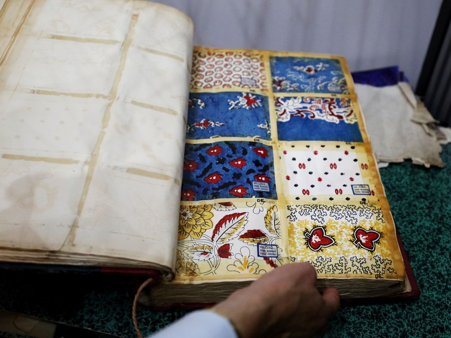 A man shows an ancient silk book in Adamley Textiles, a silk factory, in Macclesfield, Britain, Aug. 11, 2022. (Xinhua/Li Ying)