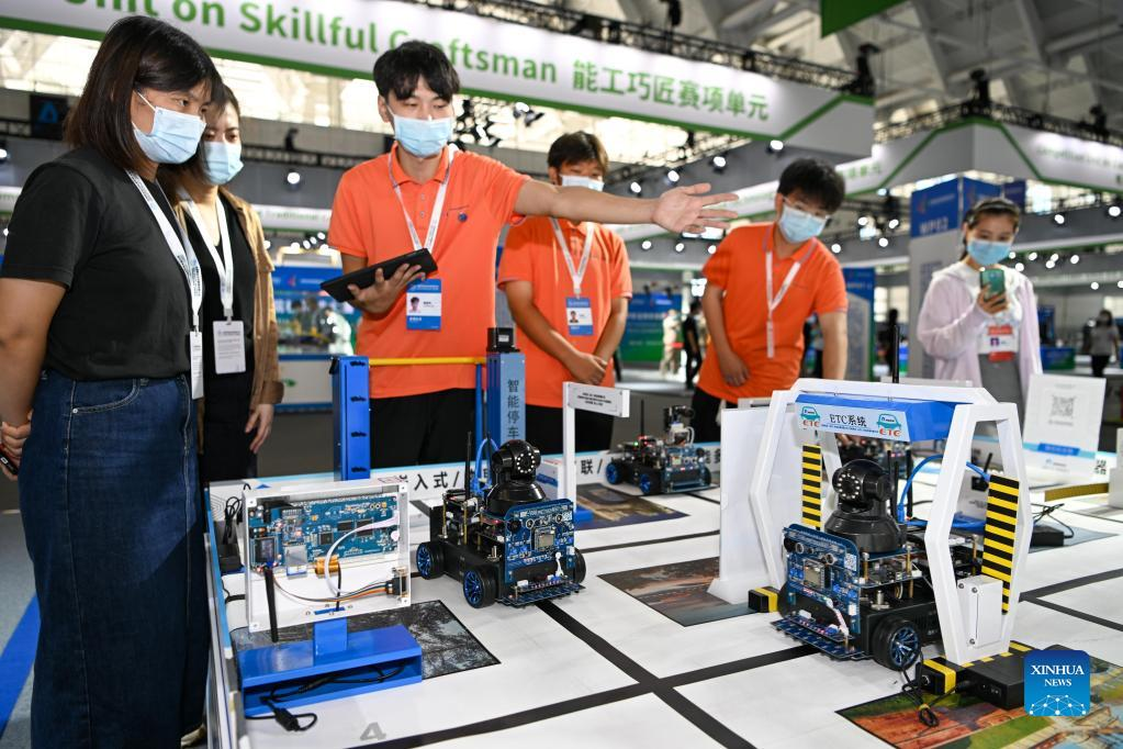 The World Vocational College Skills Competition is held at the national convention and exhibition center in Tianjin, north China, Aug. 19, 2022. The competition, as a part of the World Vocational and Technical Education Development Conference, attracted participants from over 100 countries and regions. (Xinhua/Sun Fanyue)