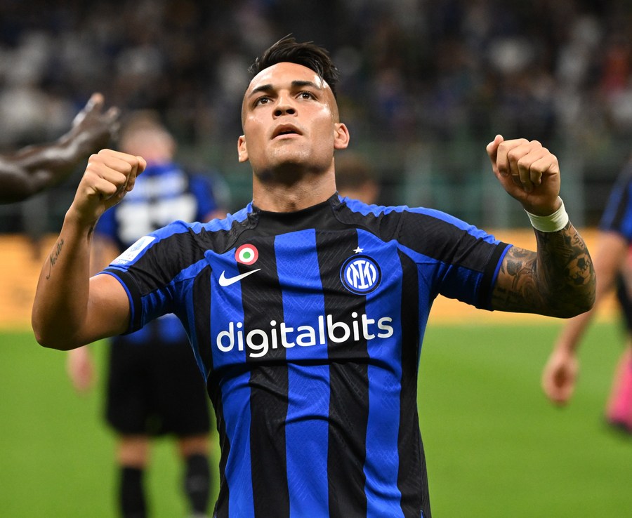 Inter Milan's Lautaro Martinez celebrates his goal during the match. (Photo by Daniele Mascolo/Xinhua)