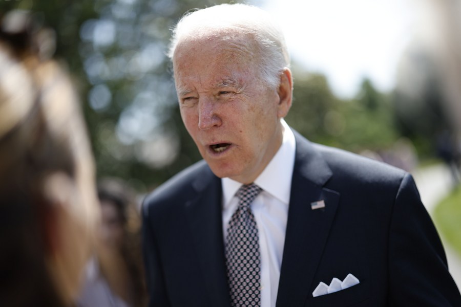 U.S. President Joe Biden speaks to members of the press at the White House in Washington, D.C., the United States, on June 17, 2022. (Photo by Ting Shen/Xinhua)