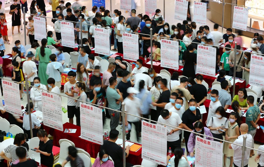 Job seekers participate in a job fair in Tengzhou City, east China's Shandong Province, Aug. 20, 2022. (Photo by Li Zhijun/Xinhua)