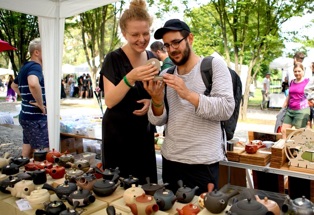 People visit a stand selling teapots at the Cajomir Fest, an international tea festival, in Prague, the Czech Republic, on Aug. 21, 2022. (Photo by Dana Kesnerova/Xinhua)