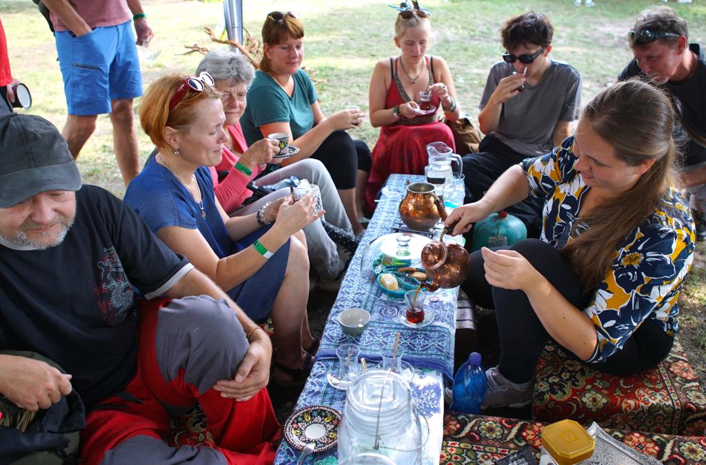 People taste Turkish tea at a stand during the Cajomir Fest, an international tea festival, in Prague, the Czech Republic, on Aug. 21, 2022. (Photo by Dana Kesnerova/Xinhua)