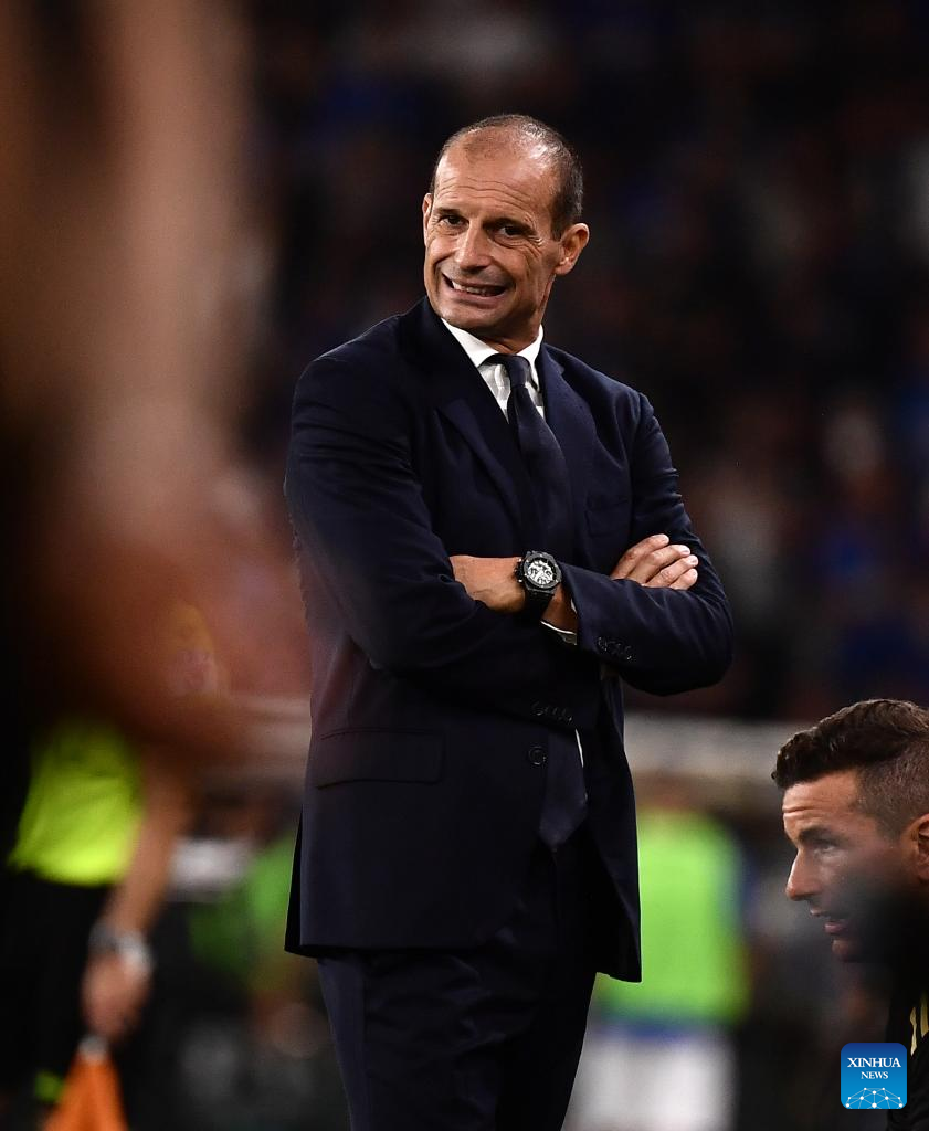 FC Juventus' head coach Massimiliano Allegri gestures during an Italian Serie A football match between FC Juventus and Sampdoria in Genova, Italy, Aug. 22, 2022. (Photo by Federico Tardito/Xinhua)