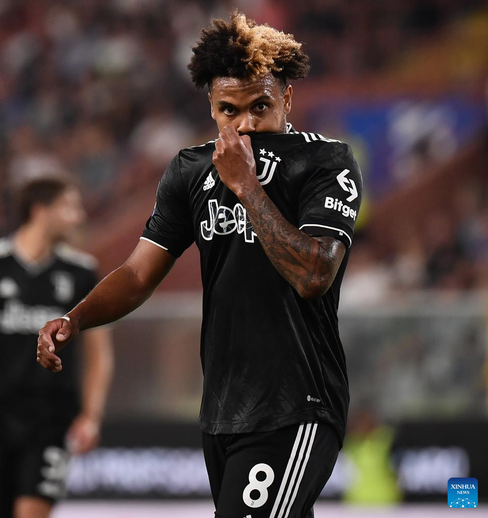 FC Juventus' Weston McKennie reacts during an Italian Serie A football match between FC Juventus and Sampdoria in Genova, Italy, Aug. 22, 2022. (Photo by Federico Tardito/Xinhua)