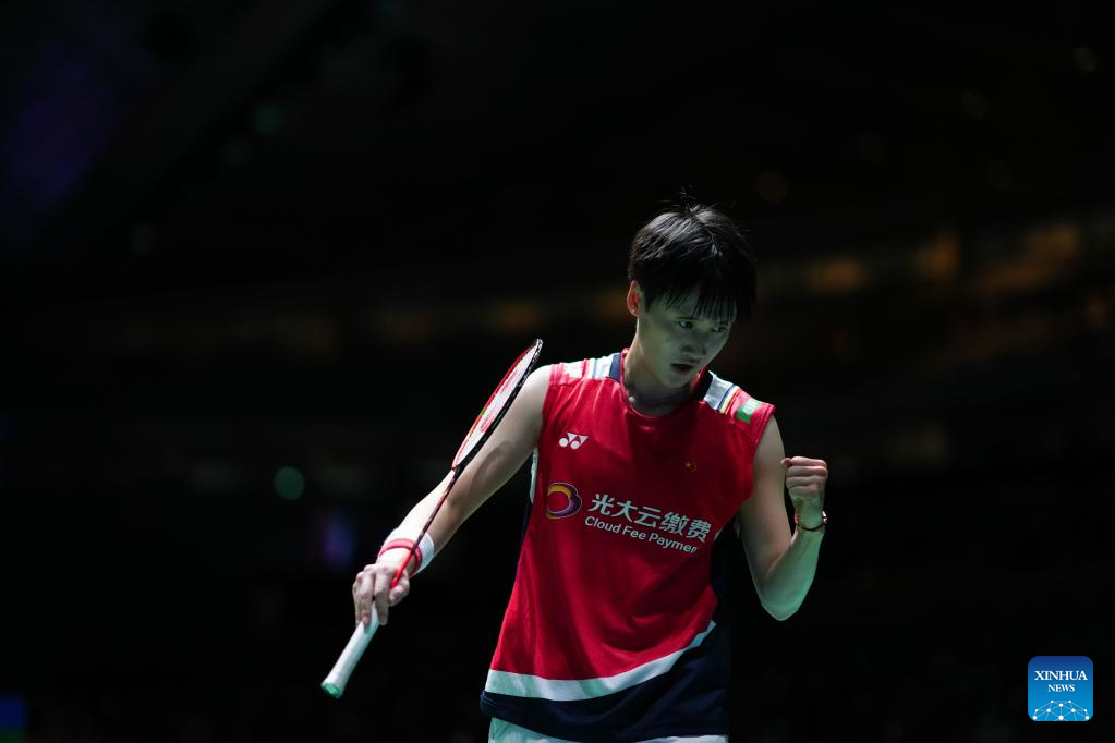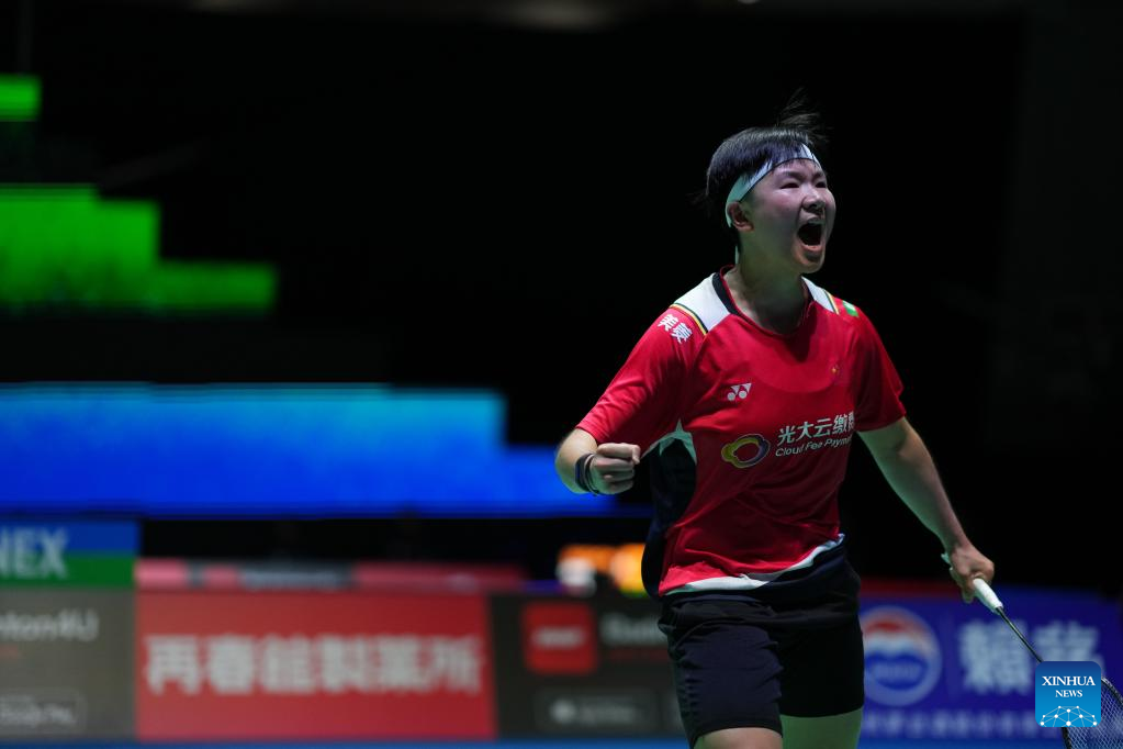 Chen Yufei of China celebrates scoring during the women's singles third round match against Pornpawee Chochuwong of Thailand at the BWF World Championships 2022 in Tokyo, Japan, Aug. 25, 2022. (Xinhua/Zhang Xiaoyu)