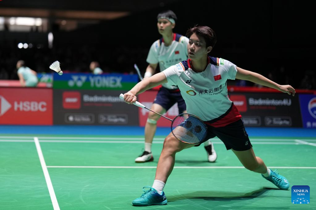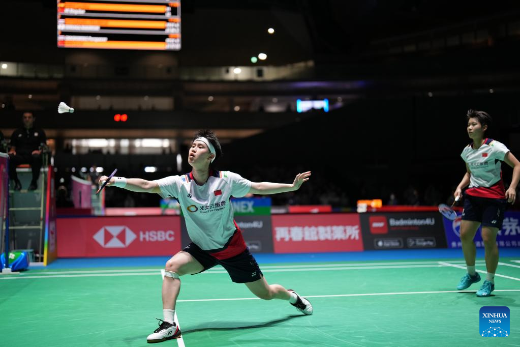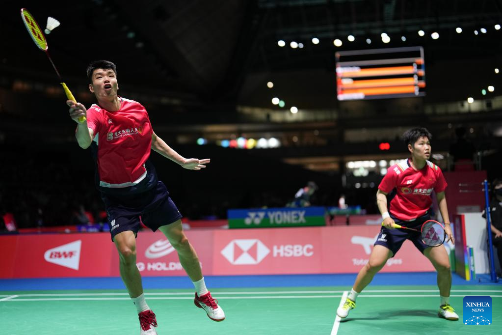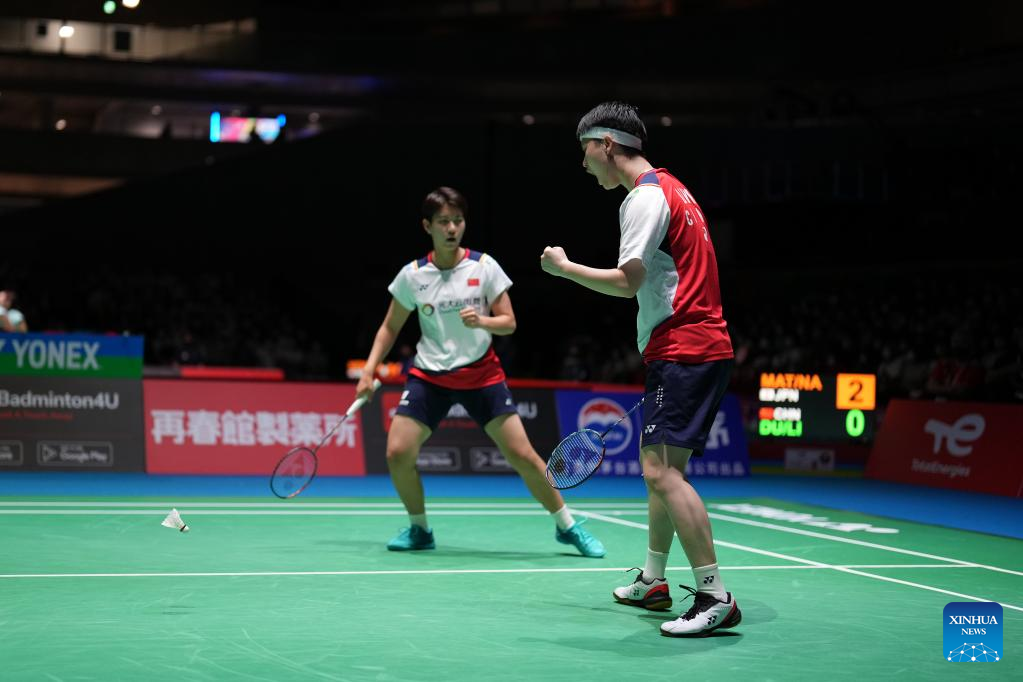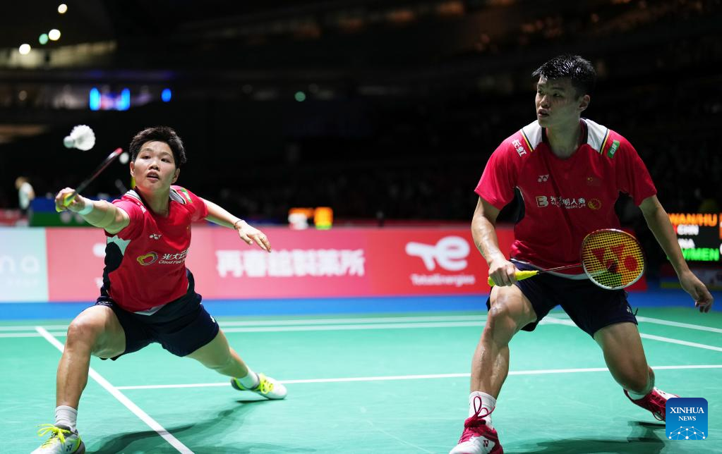 Wang Yilyu/Huang Dongping (L) of China compete during the mixed doubles third round match against Rinov Rivaldy/Pitha Haningtyas Mentari of Indonesia at the BWF World Championships 2022 in Tokyo, Japan, Aug. 25, 2022. (Xinhua/Zhang Xiaoyu)