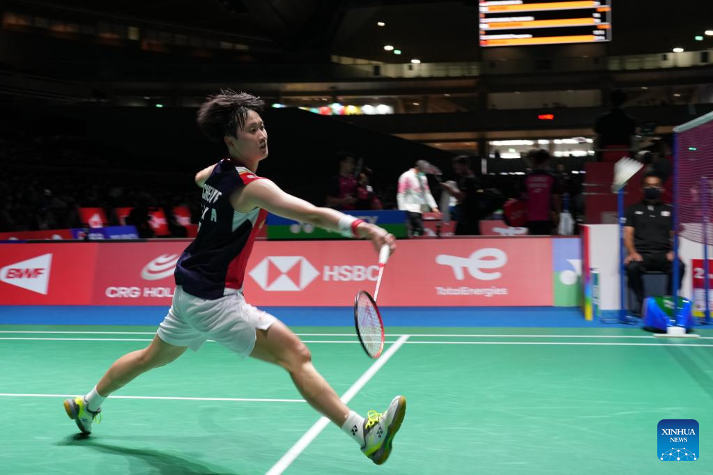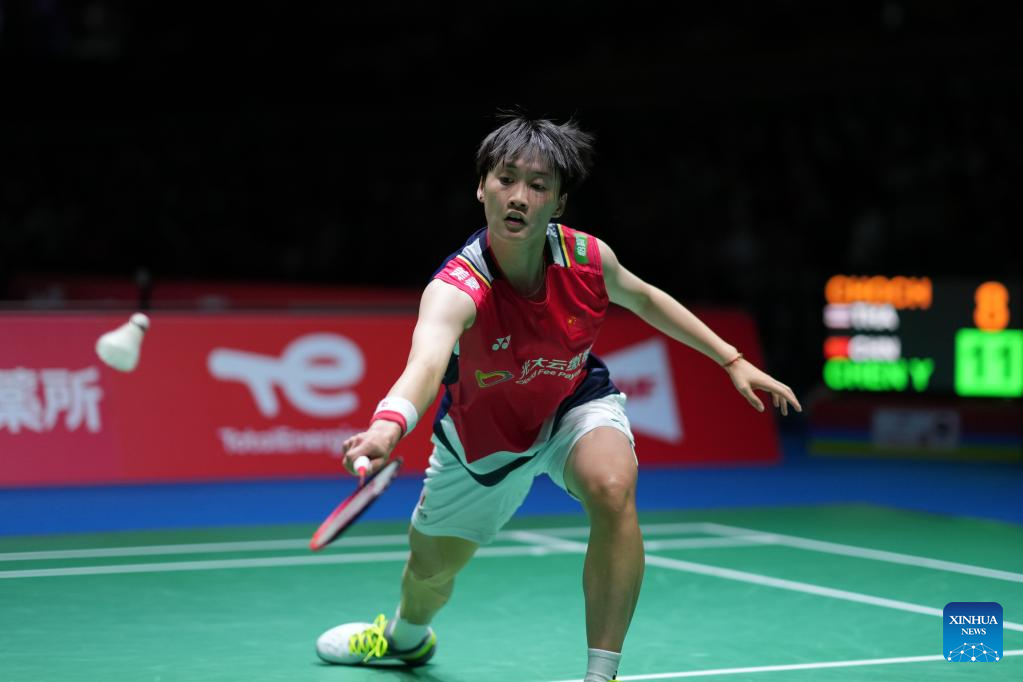 Chen Yufei of China hits a return during the women's singles third round match against Pornpawee Chochuwong of Thailand at the BWF World Championships 2022 in Tokyo, Japan, Aug. 25, 2022. (Xinhua/Zhang Xiaoyu)