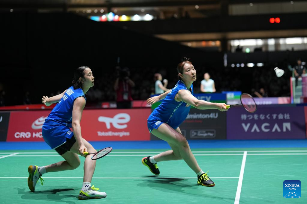 Du Yue/Li Wenmei (L) of China compete during the women's doubles third round match against Matsumoto Mayu/Nagahara Wakana of Japan at the BWF World Championships 2022 in Tokyo, Japan, Aug. 25, 2022. (Xinhua/Zhang Xiaoyu)