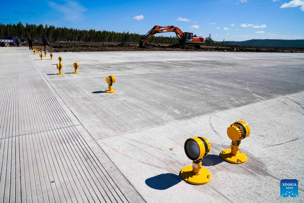 Photo taken on Aug. 26, 2022 shows the construction site of the expansion project of the Mohe airport in Mohe, northeast China's Heilongjiang Province. The expansion project of the Mohe airport, the northernmost in the country, kicked off in November 2020.