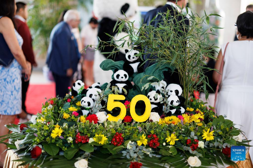 WASHINGTON, Aug. 25 (Xinhua) -- The Chinese Embassy hosted a reception on Wednesday night to highlight the 50th anniversary of giant pandas' arrival in the United States.