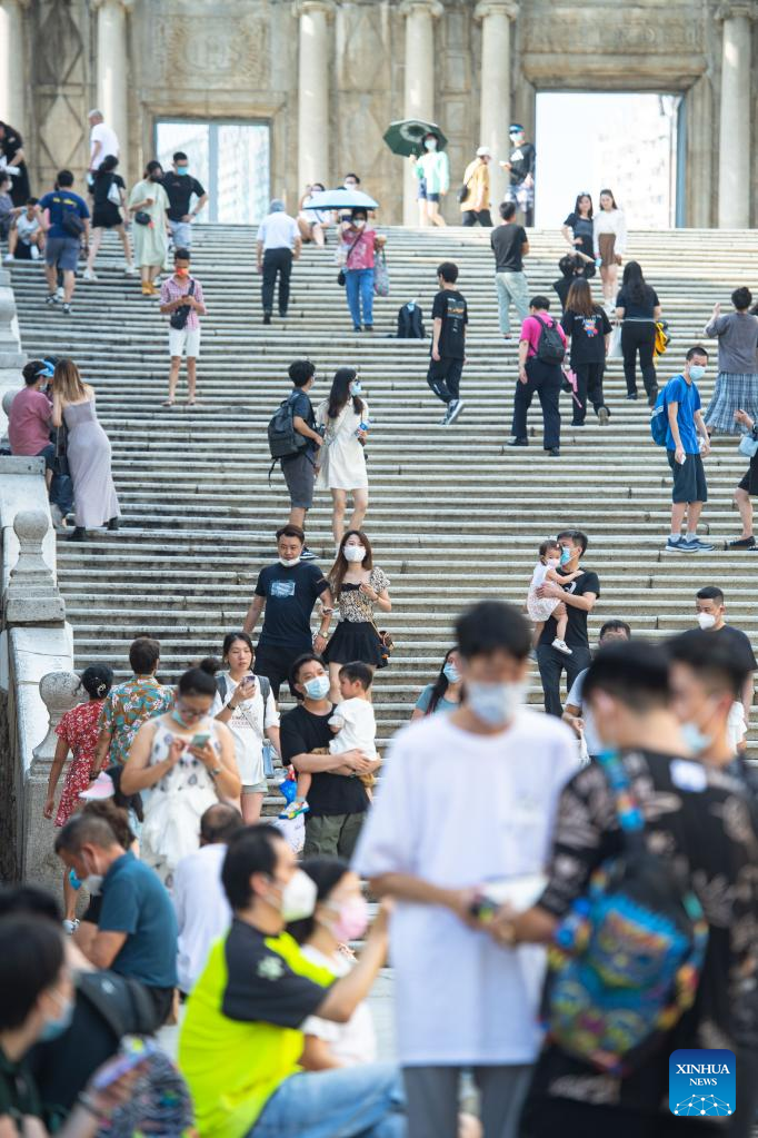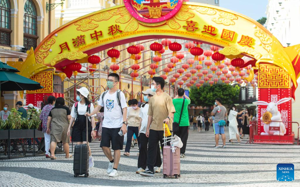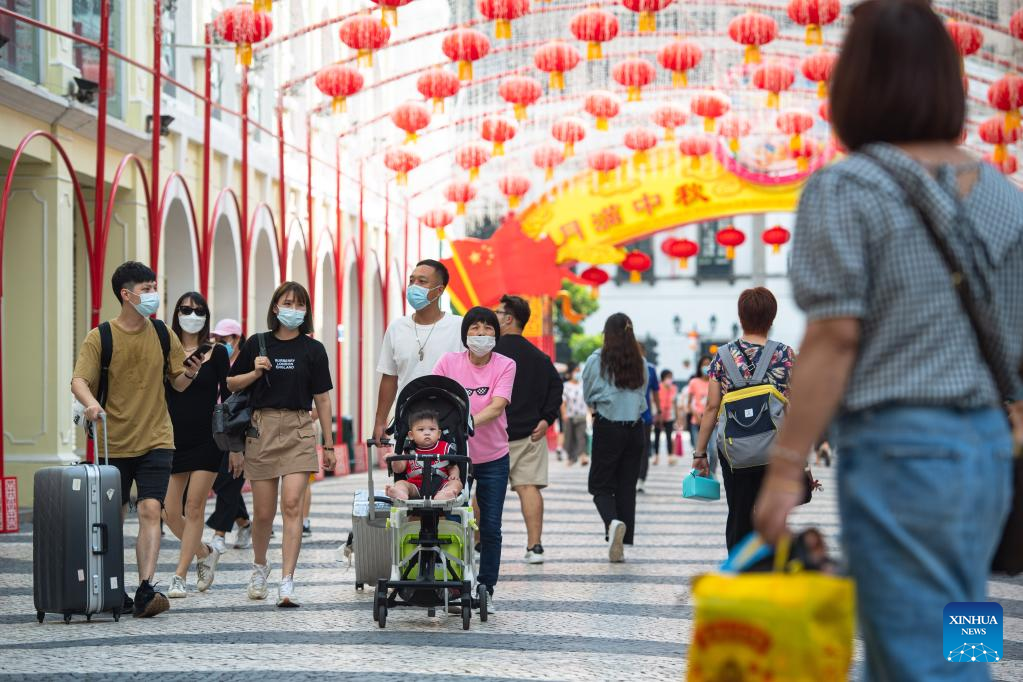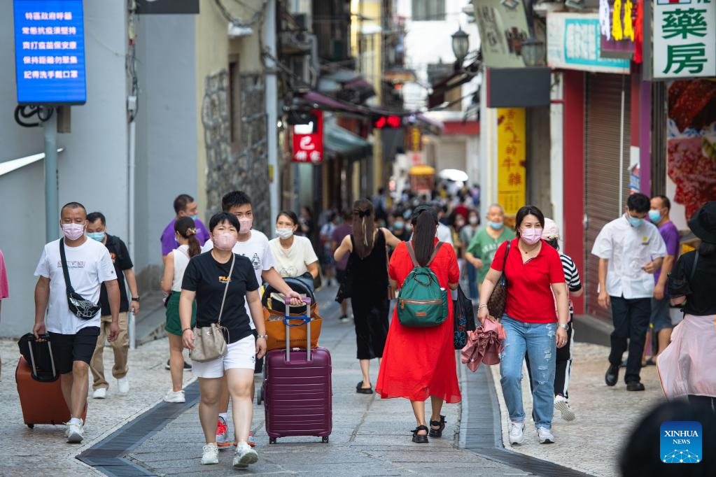 Visitors are seen at Senado Square in south China's Macao, Aug. 27, 2022. (Xinhua/Cheong Kam Ka)