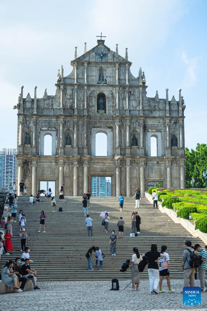 Visitors are seen at the Ruins of St. Paul's in south China's Macao, Aug. 27, 2022. (Xinhua/Cheong Kam Ka)