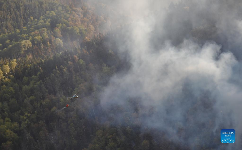 Photo taken on Aug. 23, 2022 shows a fire site in the forest area of the central resort town of Borjomi, Georgia. (Photo by Tamuna Kulumbegashvili/Xinhua)