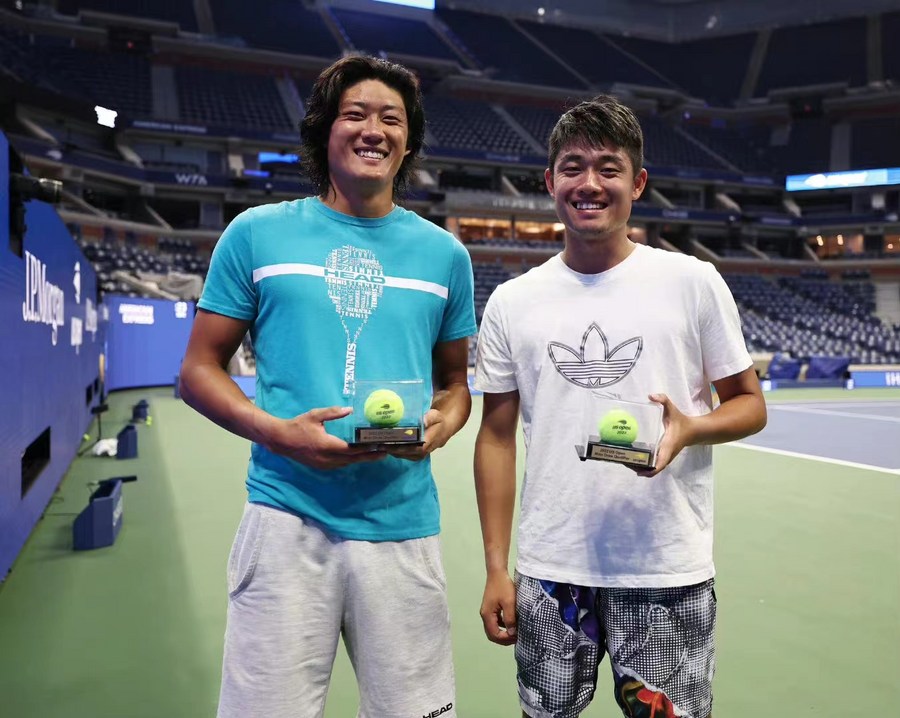 China's Wu Yibing (R) and Zhang Zhizhen pose for a photo after qualifying for the US Open men's singles main draw. (Photo courtesy of US Open Weibo account)