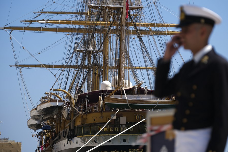 Photo taken on Aug. 27, 2022 shows a view of the Italian Navy training ship Amerigo Vespucci in Valletta, Malta. (Photo by Jonathan Borg/Xinhua)